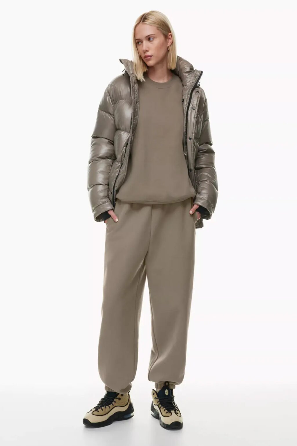 - High neckline complete with ribbed hemline